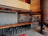 Auch im Inneren der Villa wurde nicht gespart. Rauer Beton dominiert das Bild, kombiniert mit warmen Farben in der Einrichtung. Ein weiteres Highlight ist der Esstisch aus massivem Holz, der den ein oder anderen Mann an eine Werkbank erinnern wird. Der Kambin besteht aus einem ausgesägtem Industriestahlrohr und passt sich optisch perfekt in die Villa ein.